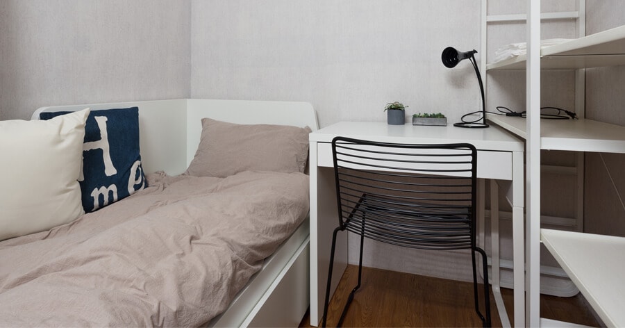 Rise and shine! Students living in a residence hall or off-campus student apartment will put on a mask or face covering as soon as they leave their room and are in common spaces like hallways or study lounges. Those areas will be rearranged to encourage social distancing with more space between seating areas. Meanwhile, cleaning will occur even more often with disinfection applied to doorknobs, desks and other surfaces.